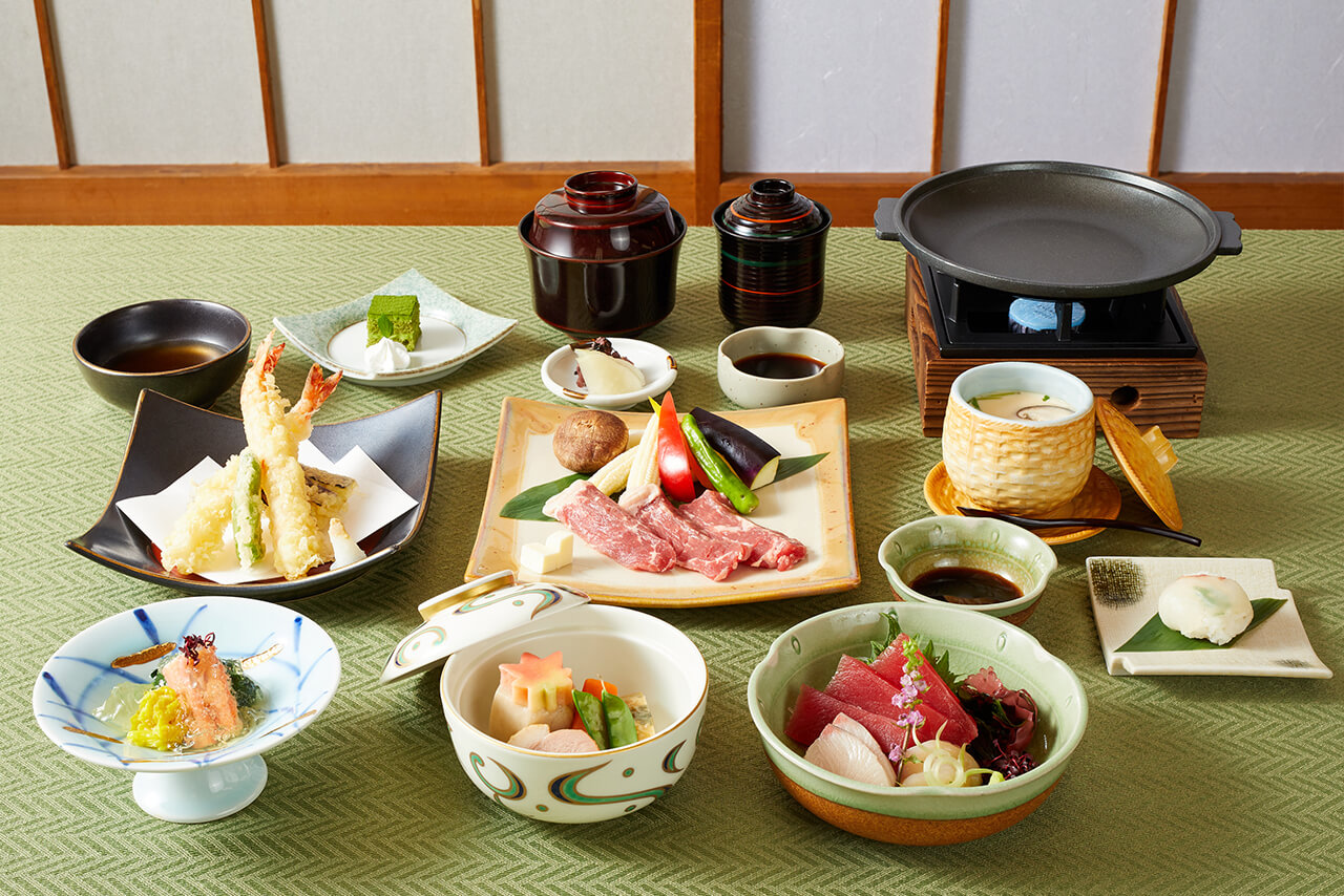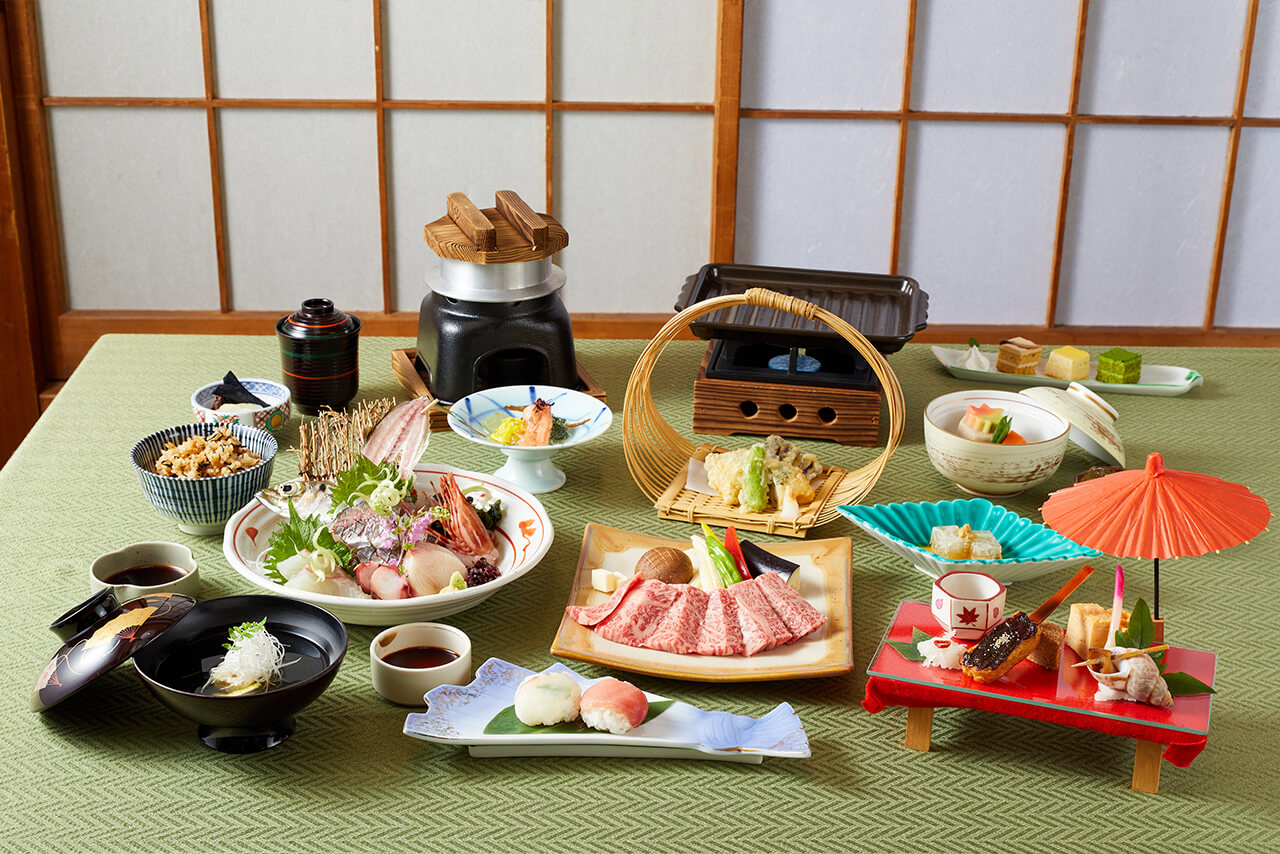 『黒毛和牛、お刺身グレードアップの会席料理』