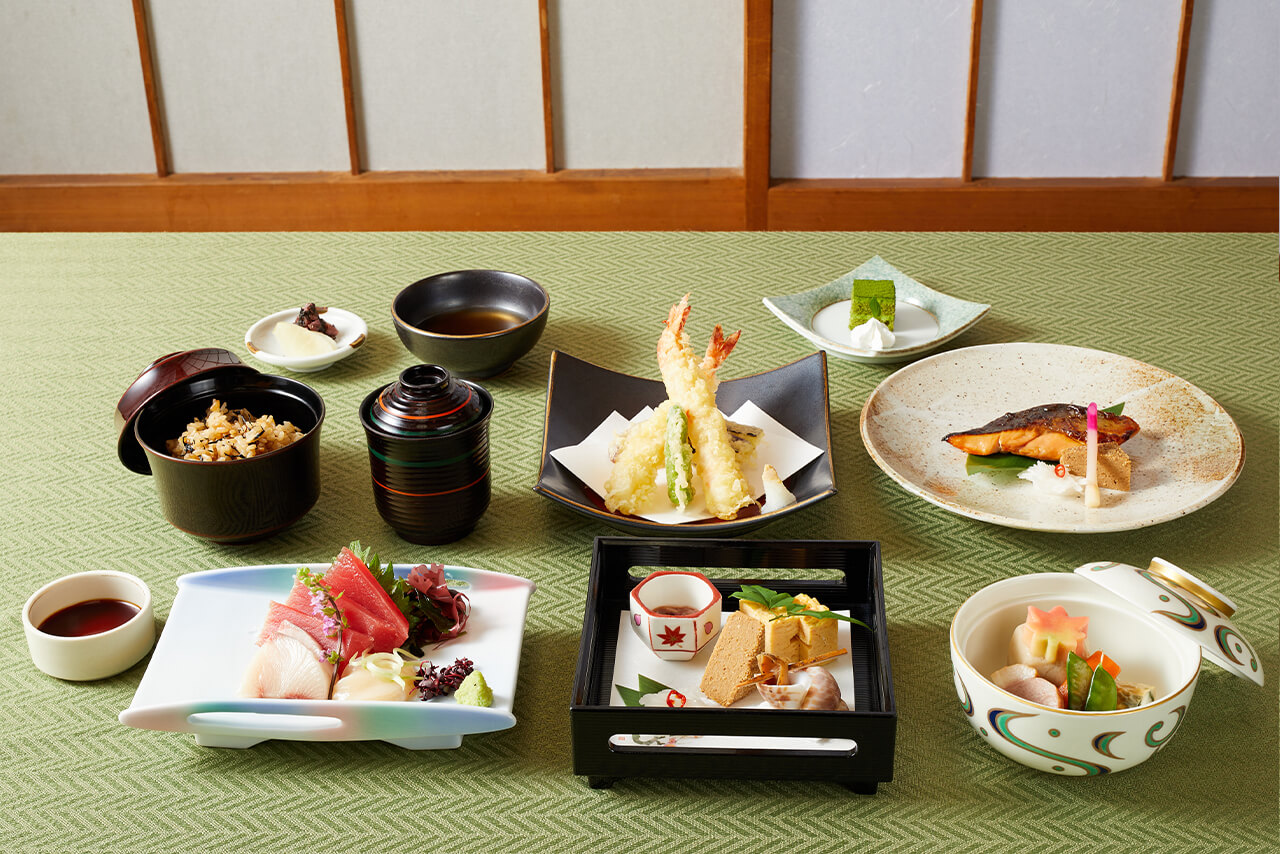 お祝いや接待のお席に。お世話になった方や近しい方とのお祝いの席、ご接待の場に、手入れの行き届いた庭園を眺めながら堪能いただく旬の鮮魚を使った和食の品々やお飲み物は格別のものがございます。