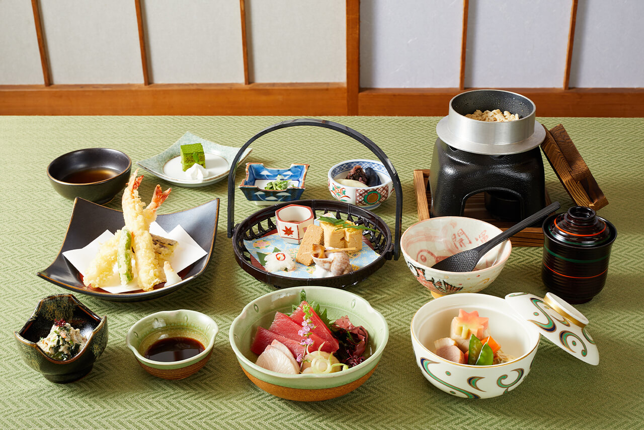 小鉢 前菜 お造り 煮物 天ぷら 釜飯 赤出汁 香の物