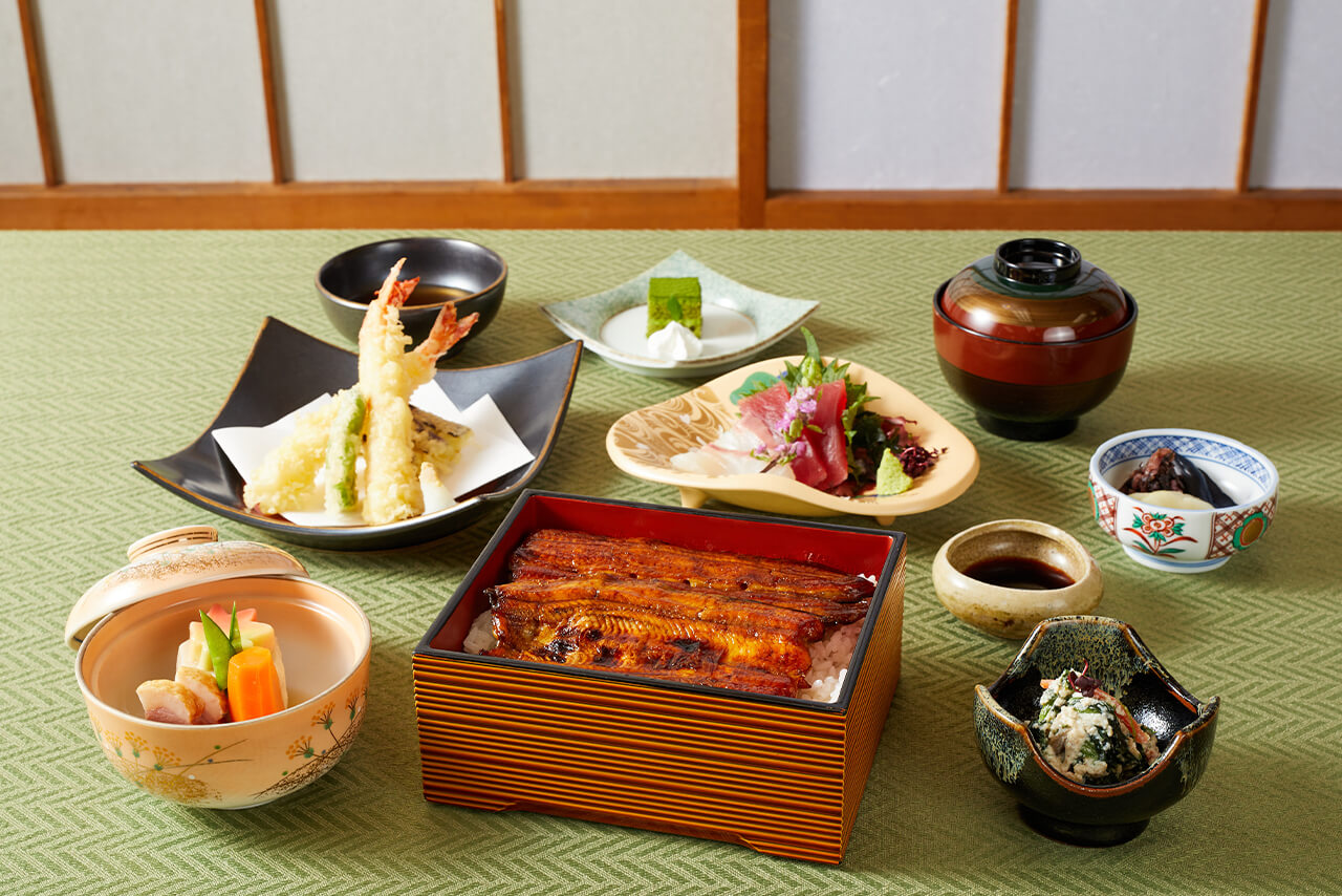 小鉢 前菜 お造り 茶碗蒸し 煮物 季節の揚げ物 うな重 肝吸い 香の物 甘味